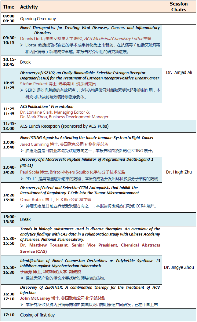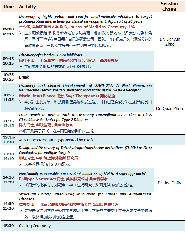 联合主办方:中国药学会药物化学专业委员会;美国化学会药物化学专业委员会