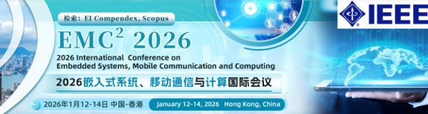 2026嵌入式系统、移动通信与计算国际会议(EMC² 2026)将于2026年1月12日至14日在中国香港举行。大会主要围绕“嵌入式系统、移动通信与计算”的最新研究展开,旨在为专家、学者、工程师及研究人员搭建一个分享科研成果与前沿技术的平台,了解学术发展趋势,拓宽研究思路,加强学术研究与交流,促进学术成果产业化合作。
