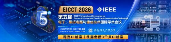 第五届电子、集成电路与通信技术国际学术会议(EICCT 2026)由成都信息工程大学、成都理工大学、河海大学联合主办,将于 2026 年 4 月 24 日至 26 日在中国活力城市成都举办。作为该领域备受期待的国际盛会,本次会议将成为全球学者、研究人员、工程师及企业界专业人士的顶级交流平台,参会人员将来自世界各地的科研机构、高校与企业。